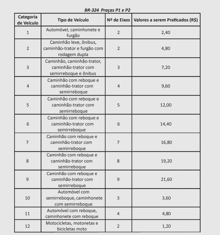 Após a Justiça derrubar uma liminar da ViaBahia que impedia a redução do pedágio nas rodovias BR-324 e BR-116, a concessionária informou que as novas tarifas, mais baratas, passam a valer nesta quinta-feira (2). A redução ocorre após a publicação, no Diário Oficial da União desta quarta-feira (1º), da deliberação nº 293 da Agência Nacional de Transportes Terrestres (ANTT).