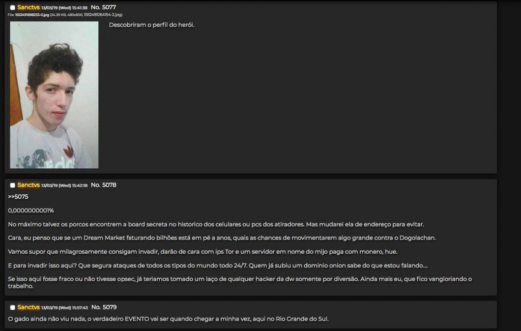 Após o crime, frequentadores do Dogolachan chamaram os jovens de "heróis" e lamentaram que o número de mortos não foi tão alto quanto o do Massacre de Realengo