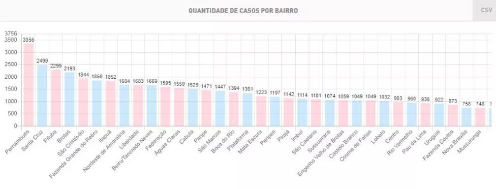 Outros dois bairros registram mais de dois mil infectados: Pituba (2.299) e Brotas (2.193). Há, ainda, 23 localidades que têm mais de mil casos confirmados desde o início da pandemia.