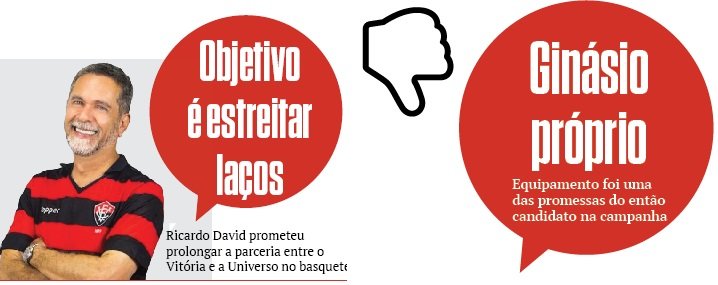 Uma das plataformas de campanha de Ricardo David, o time do Universo/Vitória se dissolveu e a parceria que fez surgir a equipe de basquete está próxima de ser declarada como extinta. A estratégia da Universidade Salgado Filho levou a equipe para o Distrito Federal e deixou o rubro-negro a ver navios. A mudança motivou interesse do Vitória em reiniciar o projeto, com um time próprio para disputar a classificação para o NBB em um futuro próximo.