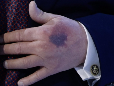 Trump minimizou os questionamentos e afirmou que não possui problemas de saúde. Segundo ele, as manchas são consequência do uso frequente de aspirina em doses acima do recomendado, prática que, por fluidificar o sangue, facilita o surgimento de hematomas mesmo após impactos leves.