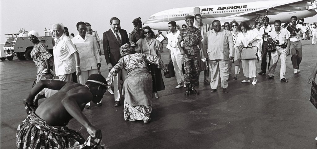 Ao lado de Eliana, Barybé e Gilberto Gil, Mário Kertész desembarca no Benin em 1987 (Arlete Soares)